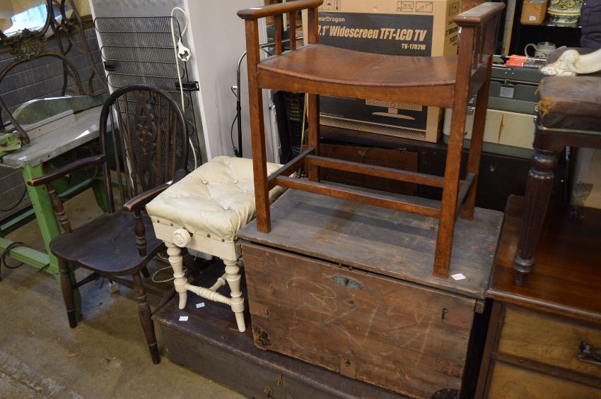 Household furniture to include chairs, piano stools, storage trunks etc.