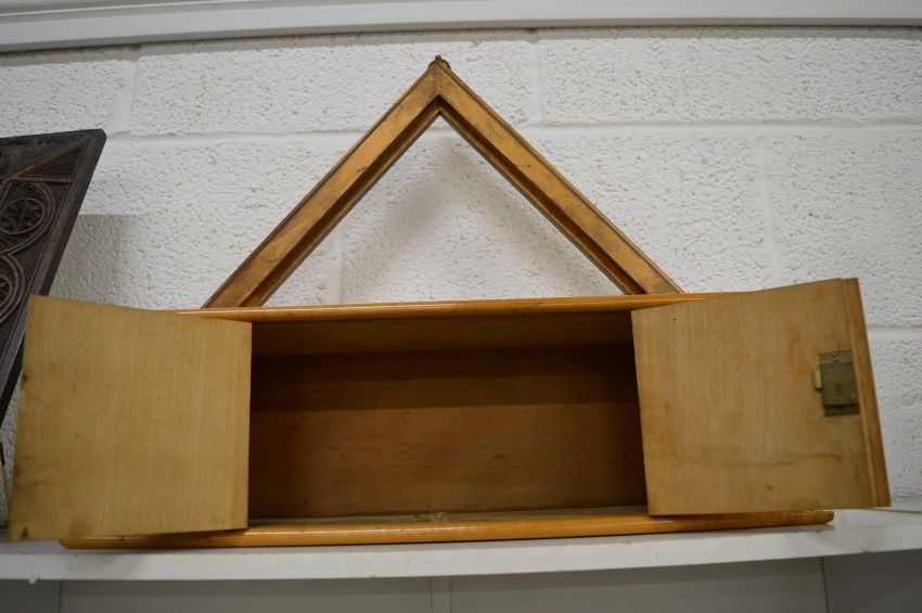 A good satin wood hanging small cabinet, pen work decoration with allegorical tales.