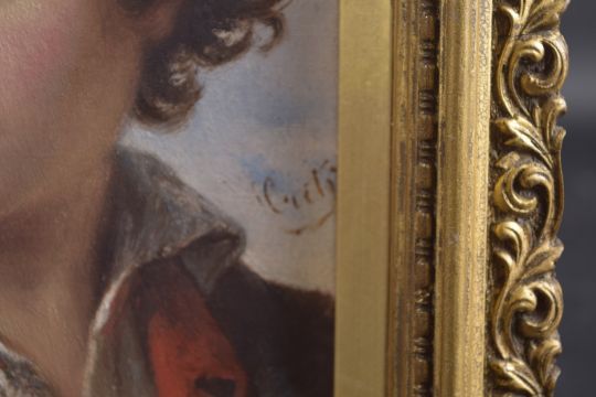 Pair of portraits of a peasant girl and boy, oils on canvas, indistinctly signed, 7" x 6" (18cm x 14.5cm)