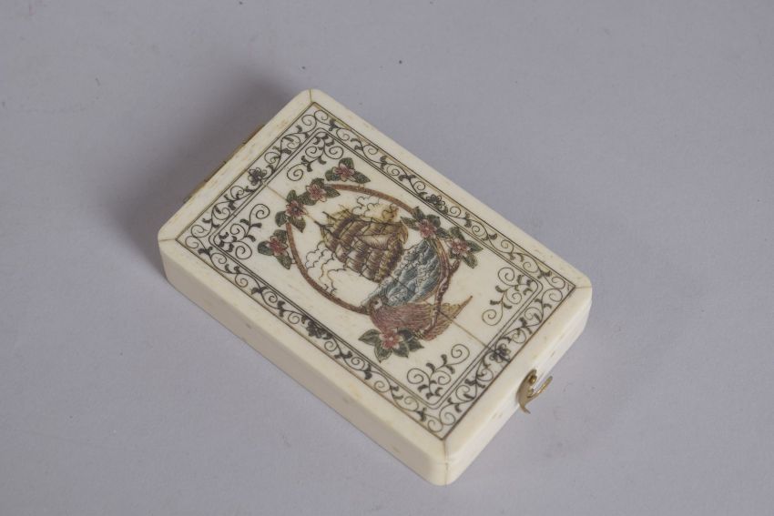 A BONE ENGRAVED FOLDING COMPASS.