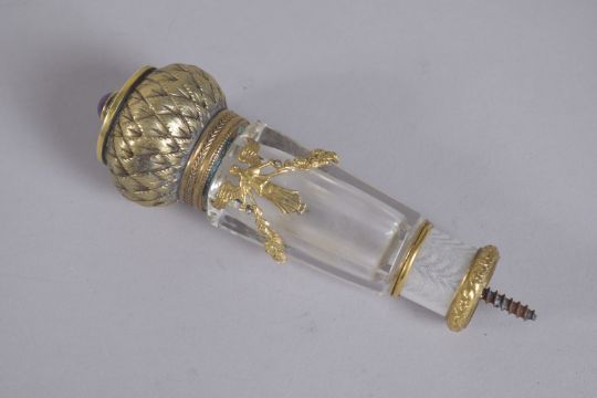 A GOOD RUSSIAN SILVER AND ENAMEL CANE TOP / HANDLE.