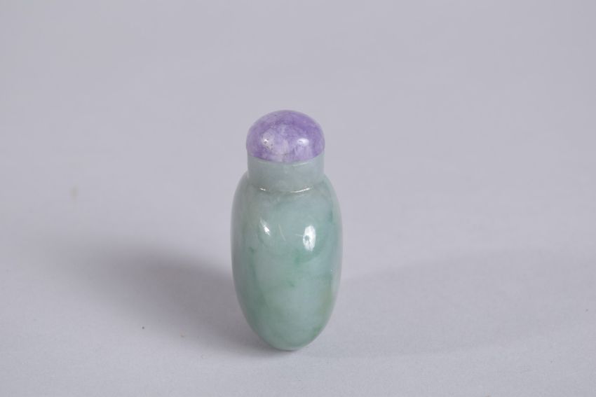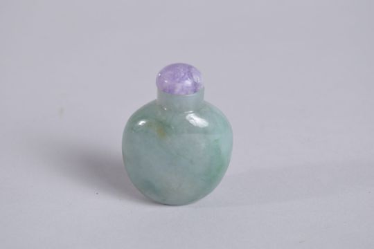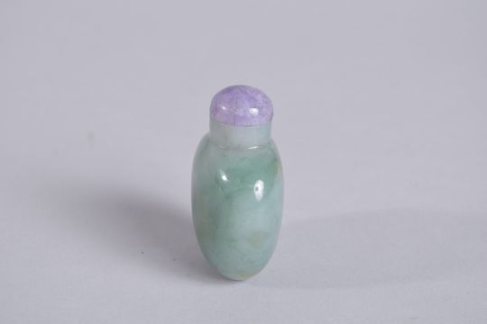 A 19TH CENTURY CHINESE JADEITE SNUFF BOTTLE, 6cm high.