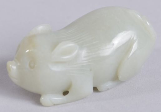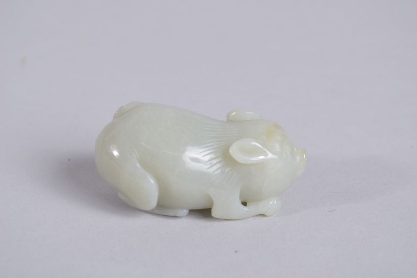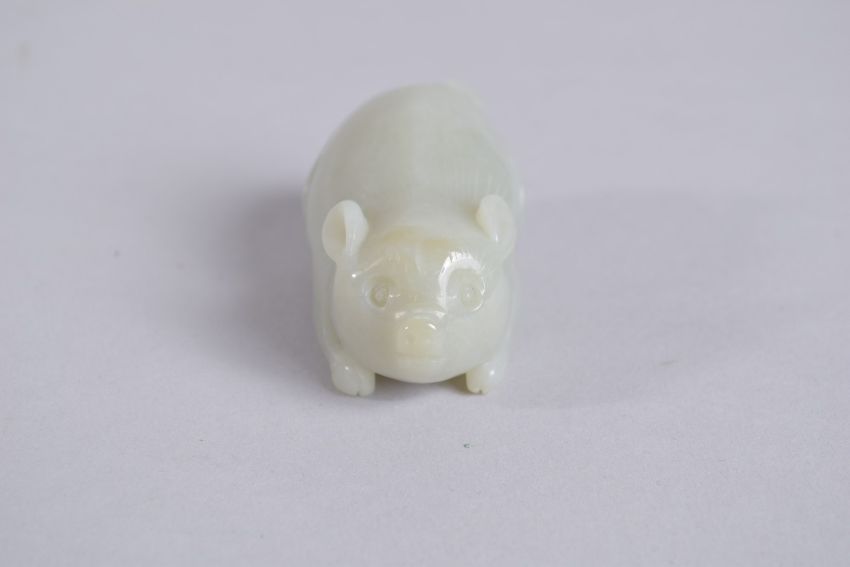 A 20TH CENTURY CHINESE CARVED JADE PIG, 6.5cm long.