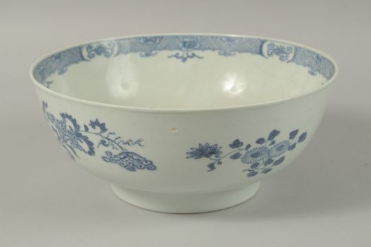 A CHINESE BLUE AND WHITE PORCELAIN PUNCH BOWL, 26cm diameter.