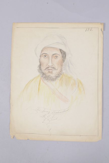 A WATERCOLOUR PORTRAIT ON PAPER, depicting Sir Jung Bahadur K.L.L. of Nepal, the verso inscribed and dated March 25 1876, 32.5cm x 25cm.