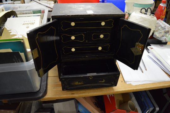 A Japanese chinoiserie decorated lacquer table cabinet.