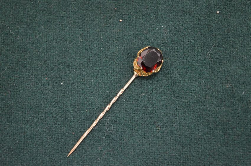 A gold and gem set tie pin.