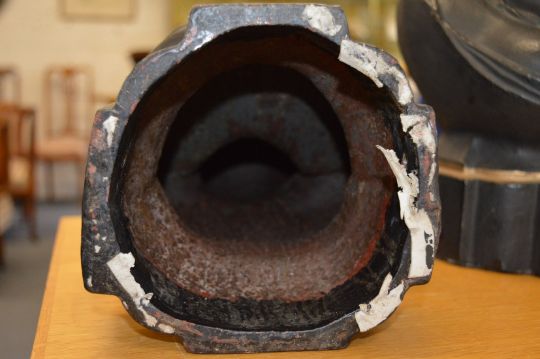 A pair of Victorian cast iron busts of ladies.