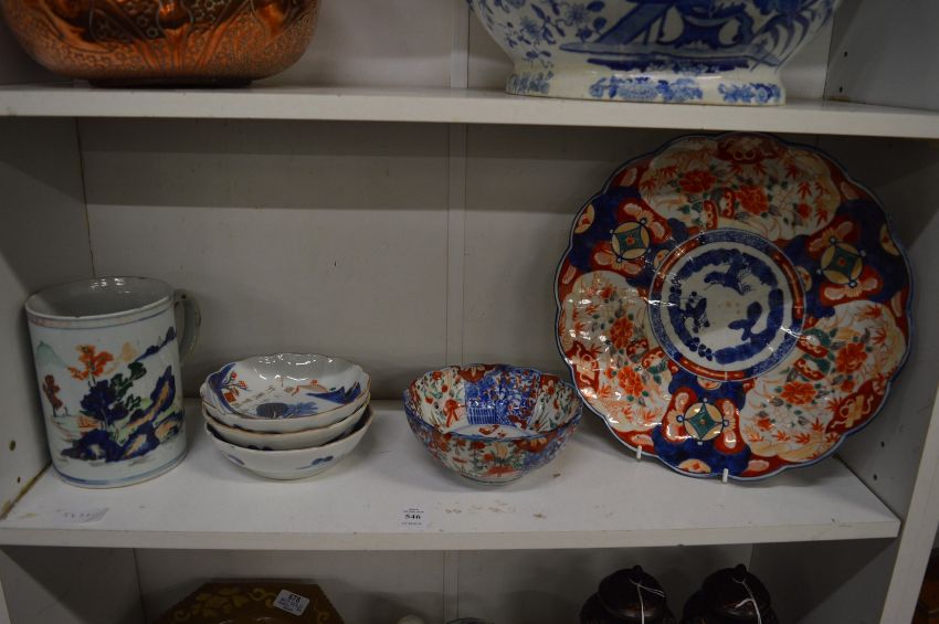 An Imari dish, Imari bowl and other items.