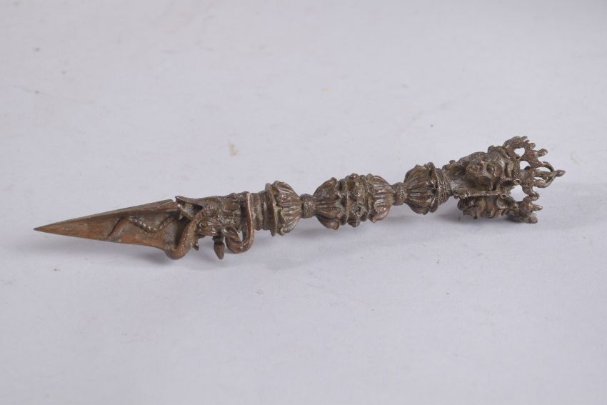 A TIBETAN MULTI-FACE VAJRA RITUAL DAGGER.