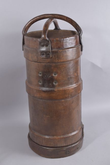 A LARGE LEATHER CIRCULAR DRUM with crossover handles R.C.D.