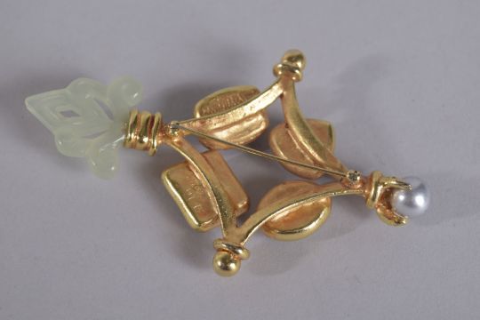 A LAGRO USA GILT HARDSTONE BROOCH.