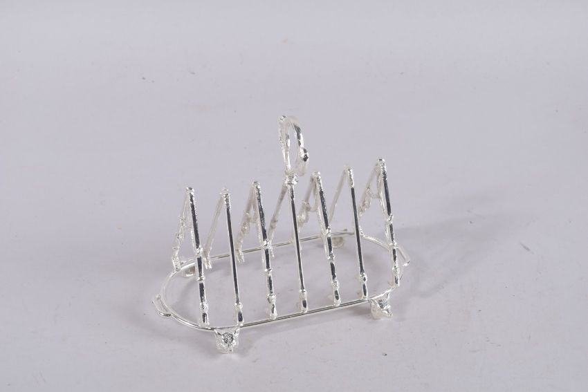 A SILVER PLATE SIX-DIVISION FOX HUNTING TOAST RACK.
