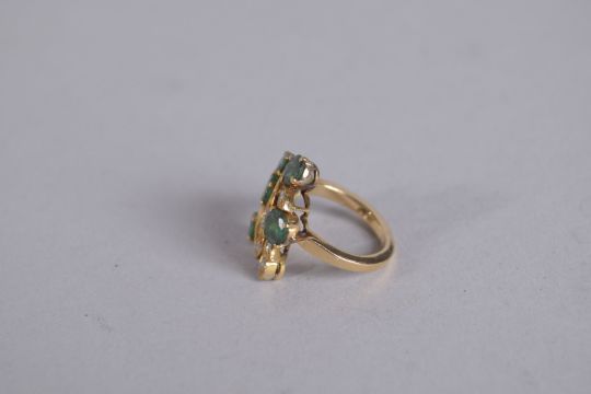 AN 18CT EMERALD AND DIAMOND FLOWER RING.