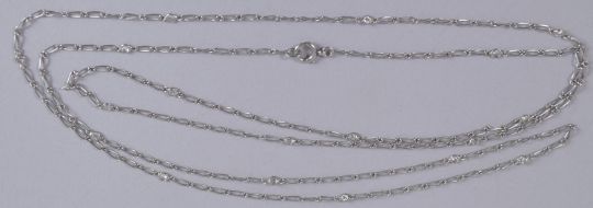 A PLATINUM AND DIAMOND LONG NECKLACE, Circa. 1920's, of delicate design, the chain interspersed with diamonds.