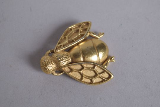 A GILT METAL BEE BROOCH, signed.