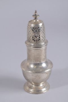 A SAM WOOD 18TH CENTURY SILVER PEPPERETTE.