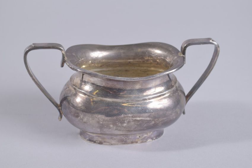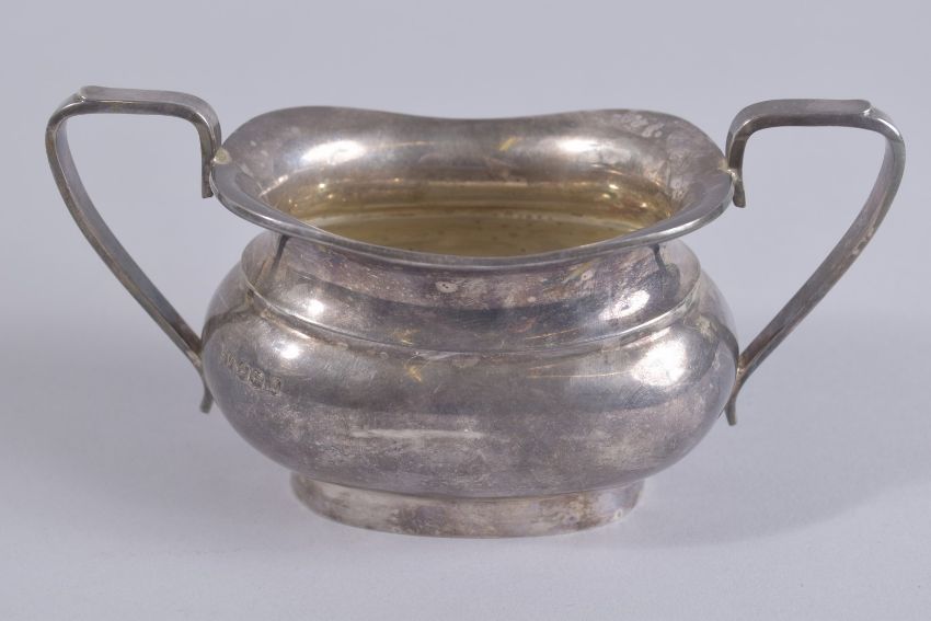 A TWO-HANDLED SILVER SUGAR BASIN.