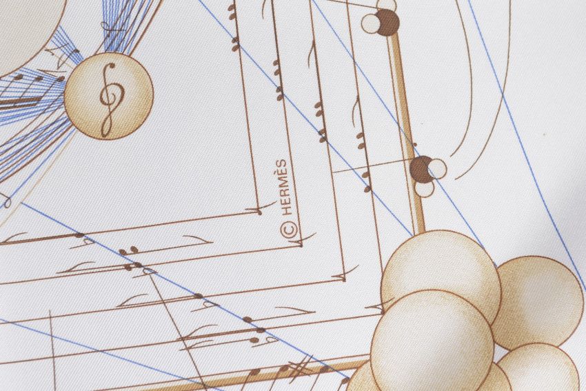 A HERMES SILK MUSIC DESIGN SCARF.