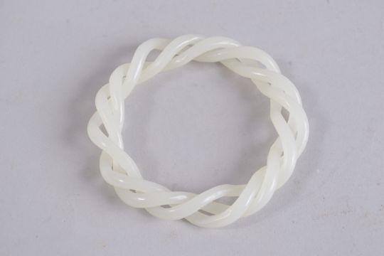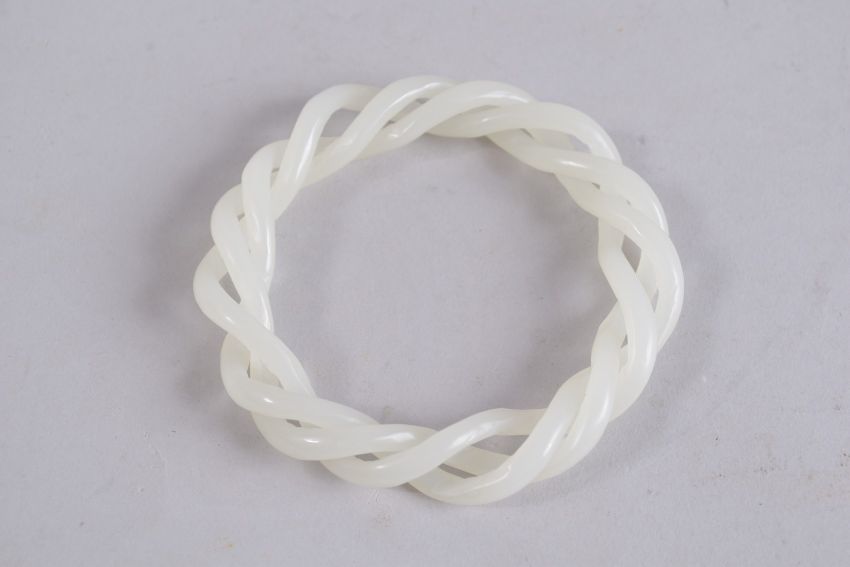AN ARTICULATED WHITE JADE BANGLE.