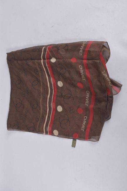 A CHANEL BROWN SILK SCARF.