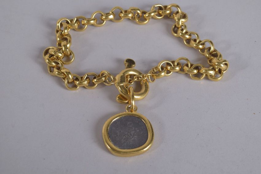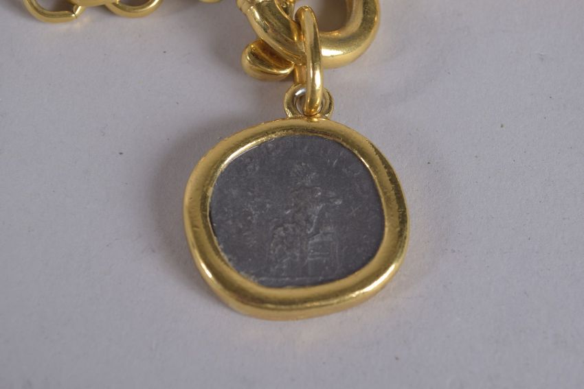 A CAROLEE GILT METAL CHOKER with a coin medallion, signed.