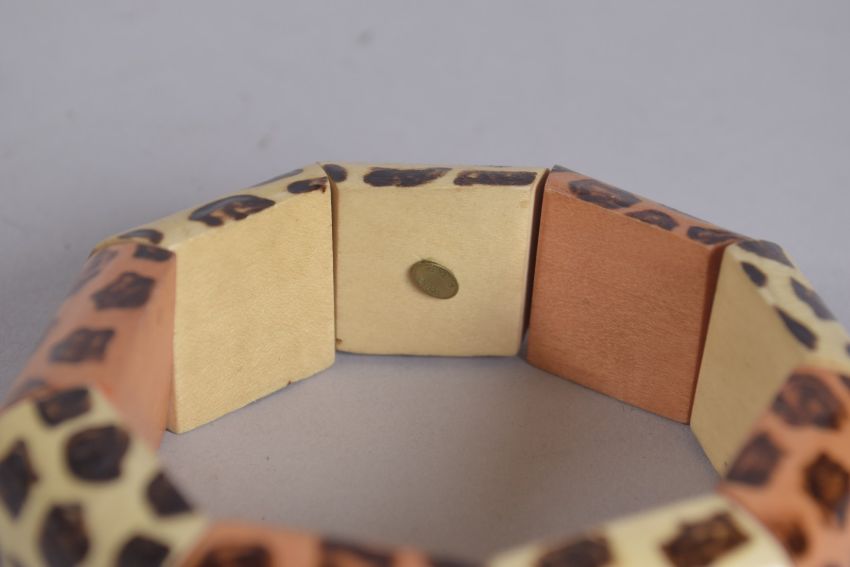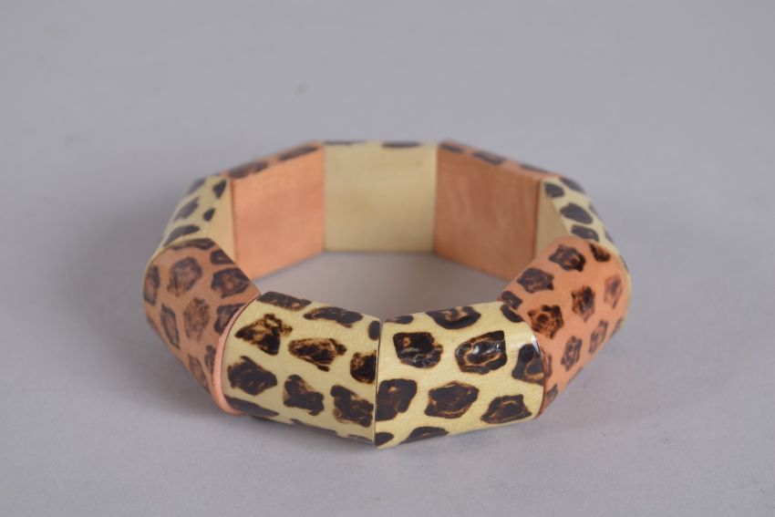 A KENNETH LANE VINTAGE LEOPARD PRINT FLEXIBLE BRACELET, signed, 3ins diameter