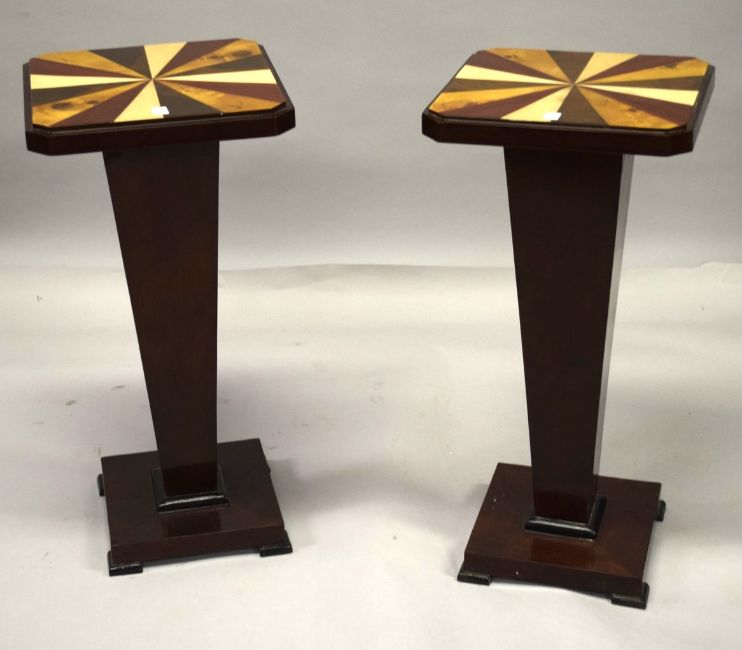 A GOOD PAIR OF DECO DESIGN PEDESTAL TABLES.