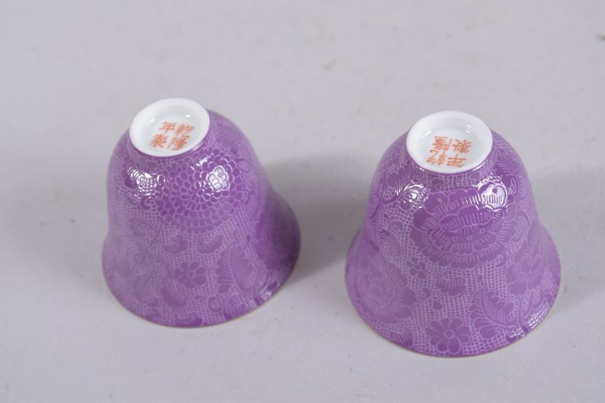 A PAIR OF CHINESE PINK GLAZE PORCELAIN TEA CUPS.