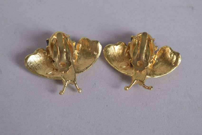 A PAIR OF GILT METAL BEE EAR CLIPS, signed.