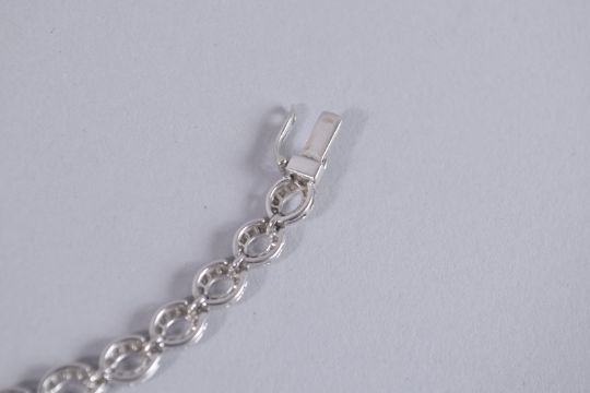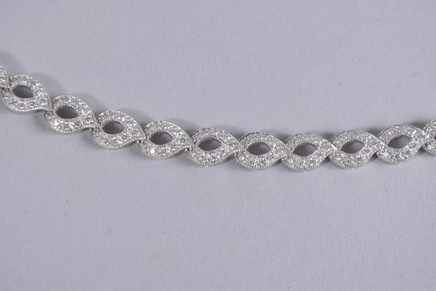 A GOOD 18CT WHITE GOLD AND DIAMOND BRACELET.