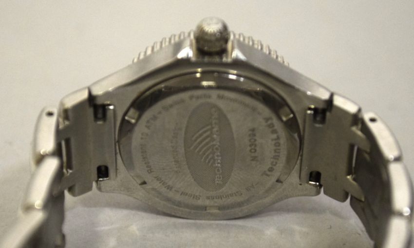 A DIAMOND TECHNOMARINE MOTHER OF PEARL FACE LADIES WATCH in leather case, with two straps and papers.
