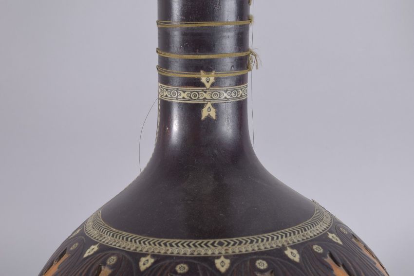 A VERY FINE 19TH CENTURY INDIAN BONE MOUNTED SITAR MUSICAL INSTRUMENT, 12.5cm long.