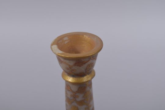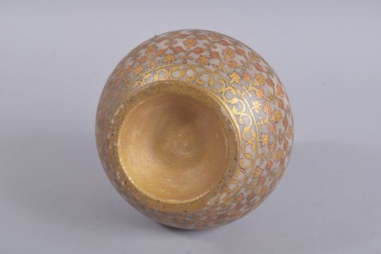 A VERY FINE 19TH CENTURY INDIAN GILDED CARVED STONE BOTTLE, 26cm high.