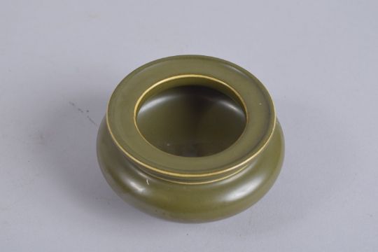 A CHINESE TEA DUST GLAZE TRIPOD CENSER, with character mark to base, 10cm diameter.