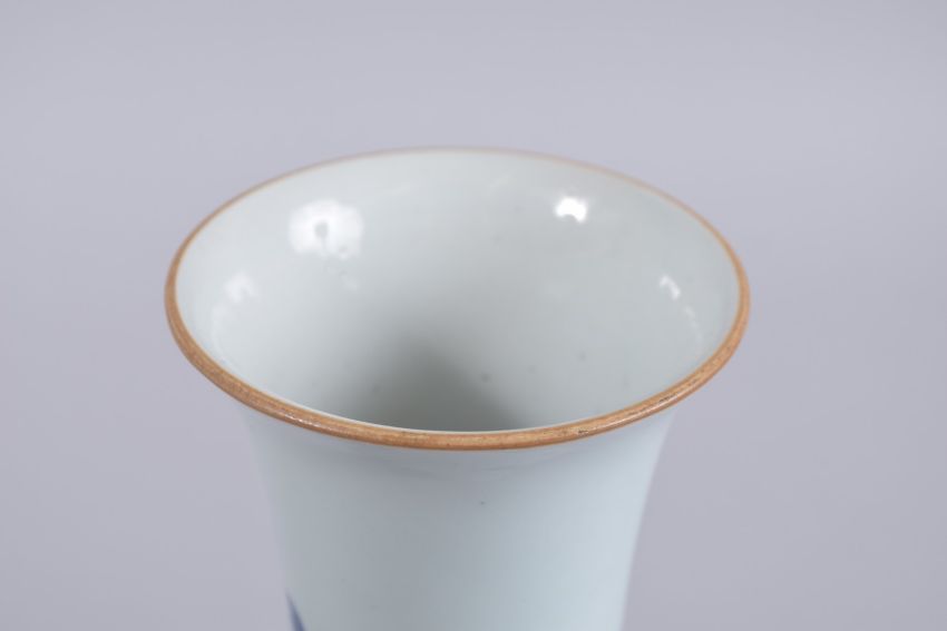 A CHINESE BLUE AND WHITE PORCELAIN SLEEVE VASE, 23.8cm high.