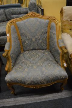 A French fauteuil with gilt wood frame.