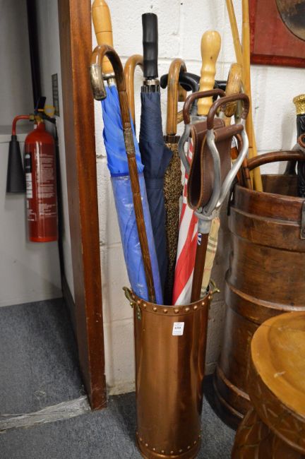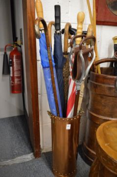 Copper stick stand and contents.