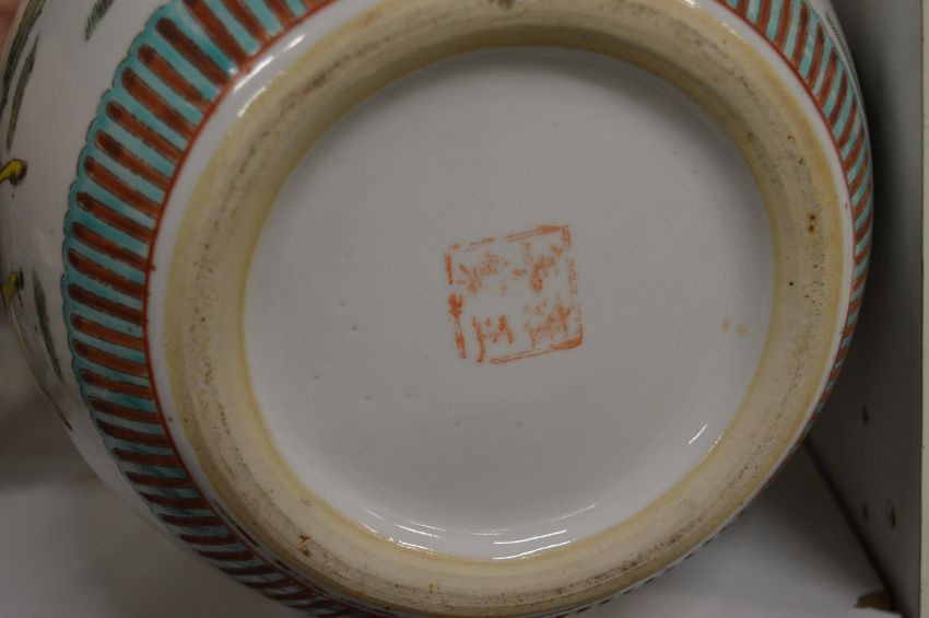 Chinese polychrome decorated porcelain jar and cover.