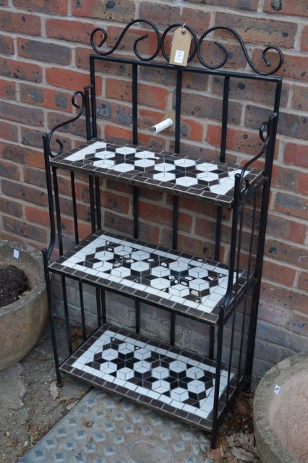 A three tier wrought iron plant stand.20