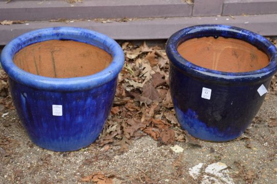 Two purple glazed plant pots.
