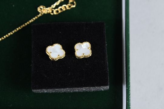 A THREE PIECE SILVER, GOLD PLATED AND MOTHER-OF PEARL CLOVER SET.