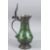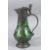 AN ART NOUVEAU GREEN TINTED GLASS AND PEWTER JUG.