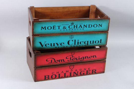 A PAIR OF WOODEN CHAMPAGNE BOXES.