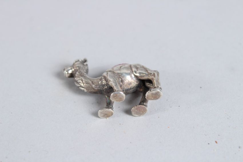 A SILVER CAMEL PIN CUSHION.