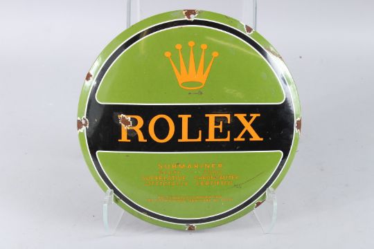 A ROLEX GREEN CIRCULAR ENAMEL SIGN.