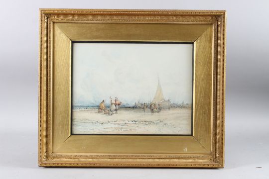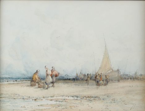 Fisherfolk on the beach unloading the catch,