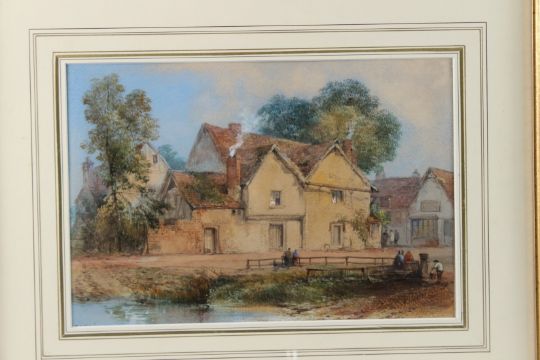 Figures at a village pond,