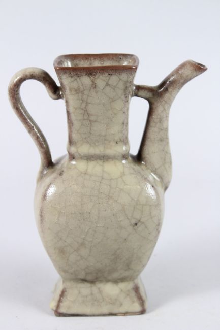 A CHINESE CRACKLE GLAZE EARTHENWARE EWER.