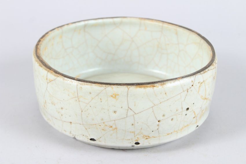 A CHINESE CELADON GLAZE POTTERY CIRCULAR BOWL.